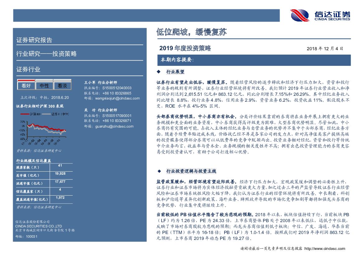 信达证券:证券行业2019年度投资策略:低位爬坡,缓慢复苏.pdf