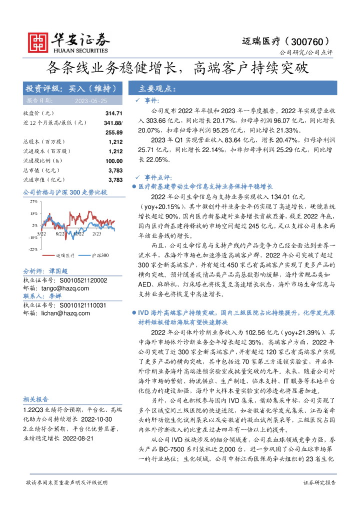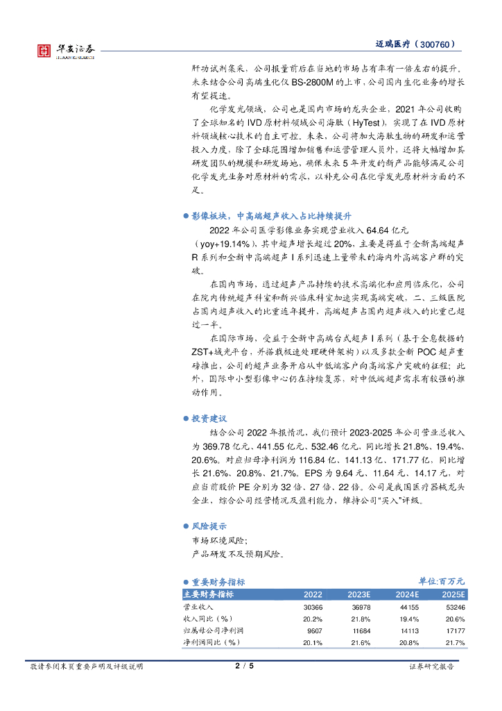 华安证券:迈瑞医疗(300760)-各条线业务稳健增长,高端客户持续突破.pdf