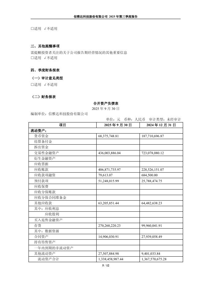 600571-信雅达:信雅达科技股份有限公司2025年三季度报告.pdf