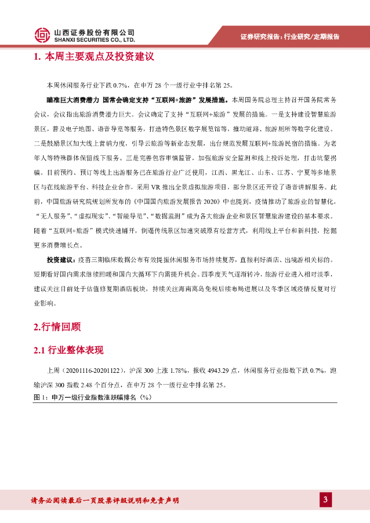 山西证券:社会服务行业周报:瞄准巨大消费潜力,国常会确定支持互联网+旅游发展措施.pdf
