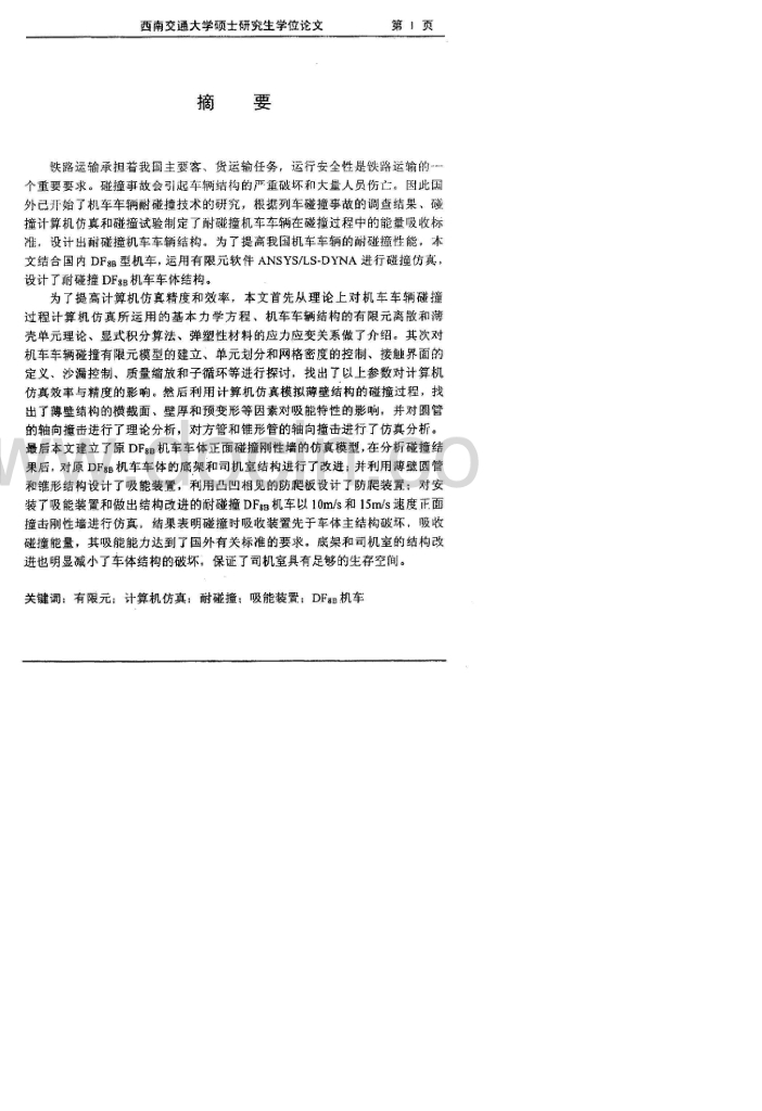 机车车体耐碰撞结构设计与碰撞仿真研究(有水印).pdf