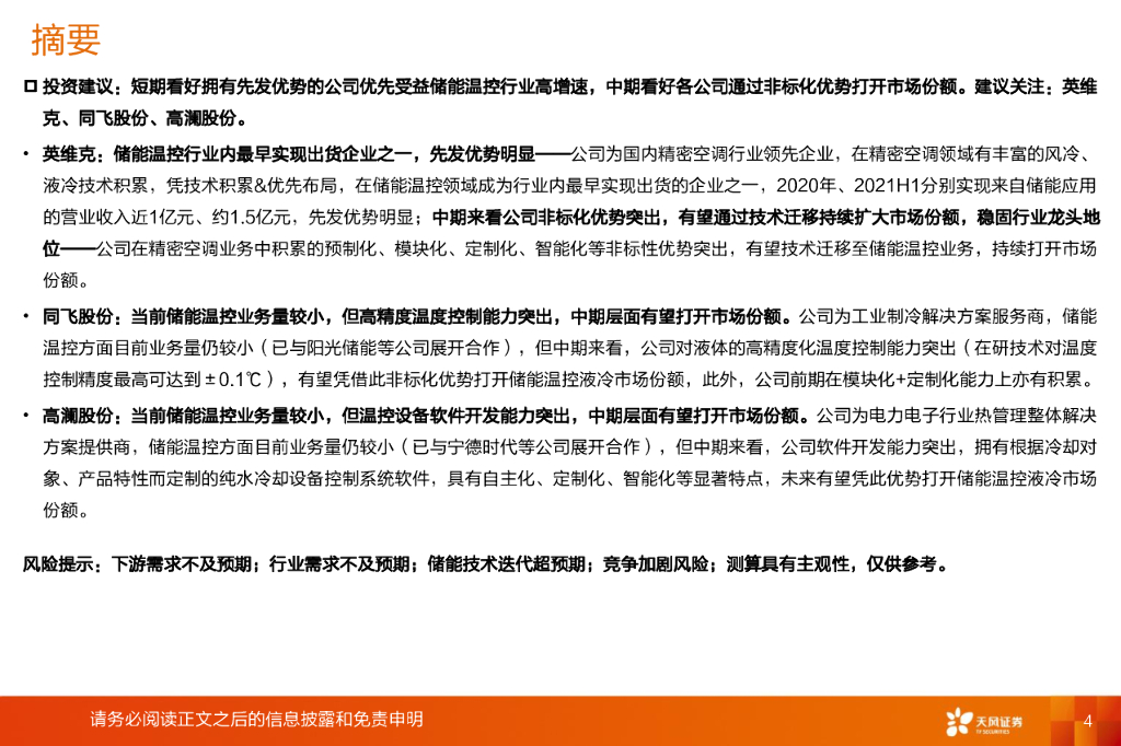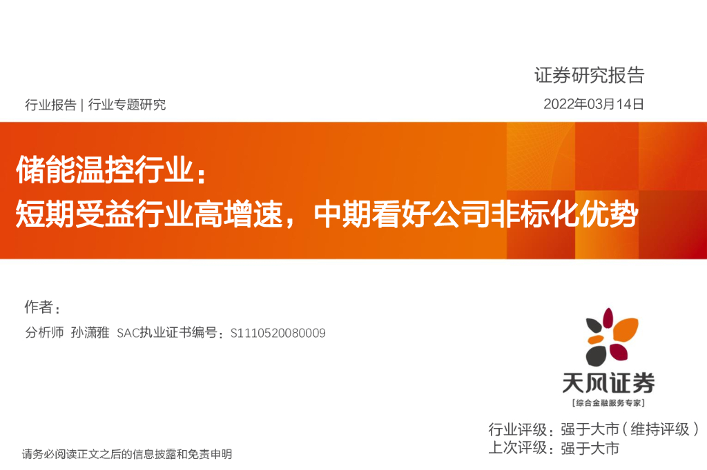 天风证券:储能温控行业:短期受益行业高增速,中期看好公司非标化优势.pdf