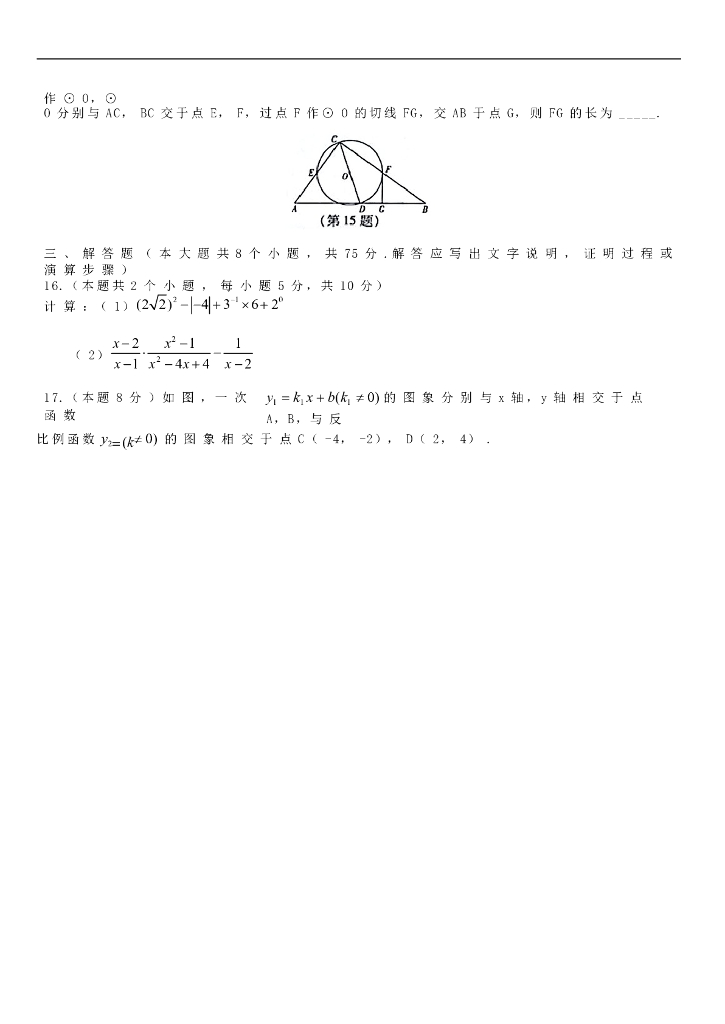 山西省中考数学试卷(不含答案版).doc