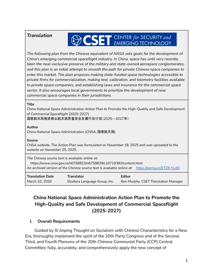 CSET:中国国家航天局商业航天高质量发展行动计划报告(2025-2027)(英文版).pdf