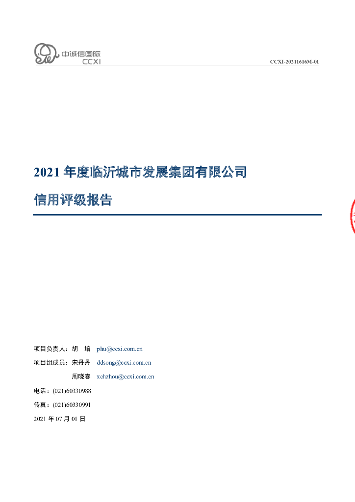 中诚信:临沂城市发展集团有限公司主体信用评级报告及跟踪评级安排.pdf