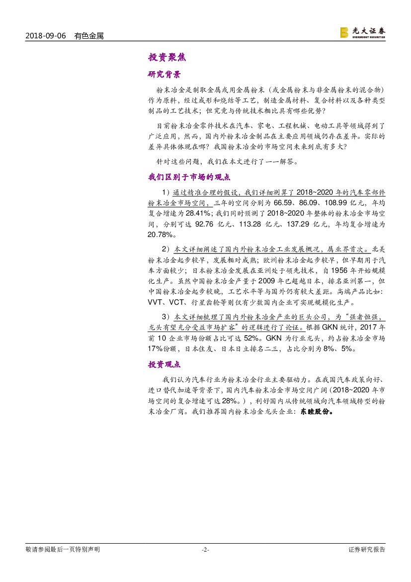 光大证券:粉末冶金(铁粉)行业深度:国内粉末冶金市场空间广阔:汽车发力+进口替代.pdf