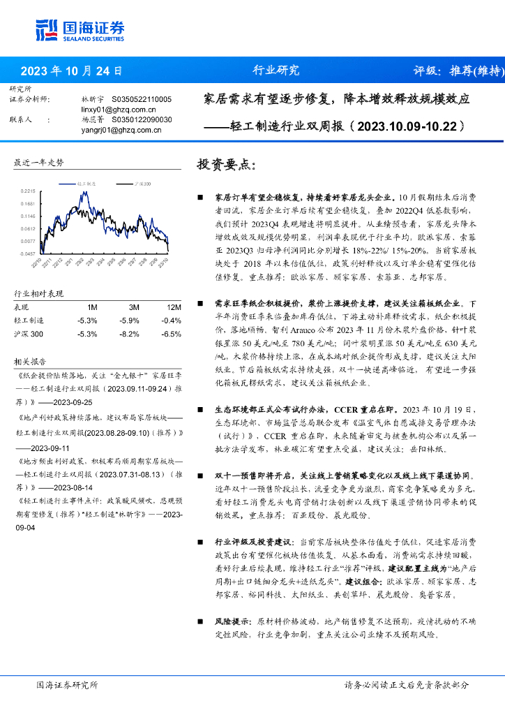 国海证券:轻工制造行业双周报:家居需求有望逐步修复,降本增效释放规模效应.pdf