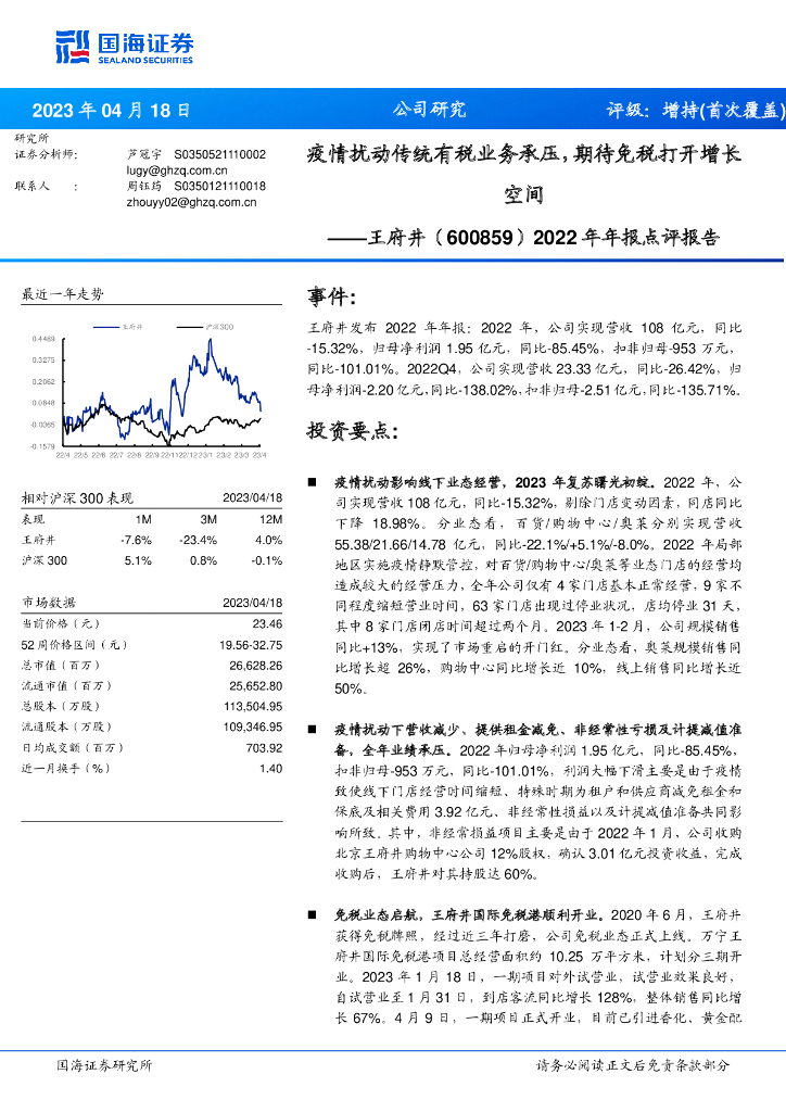 国海证券:王府井(600859)-2022年年报点评报告:疫情扰动传统有税业务承压,期待免税打开增长空间.pdf