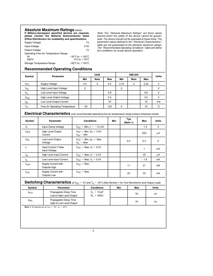 National Semiconductor 5409/DM7409 数据手册.pdf