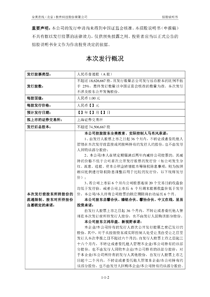 全美在线(北京)教育科技股份有限公司上交所主板IPO上市招股说明书.pdf