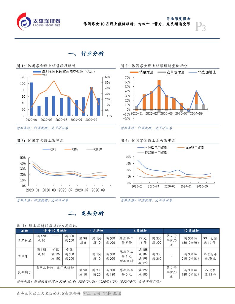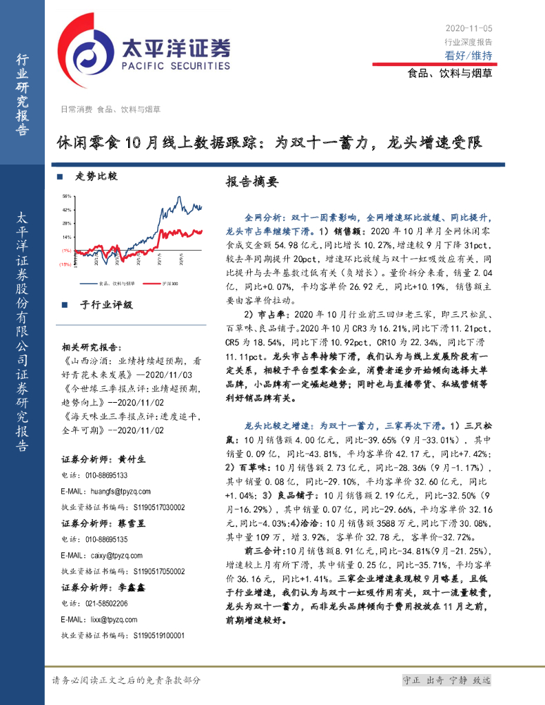 太平洋证券:休闲零食10月线上数据跟踪:为双十一蓄力,龙头增速受限.pdf