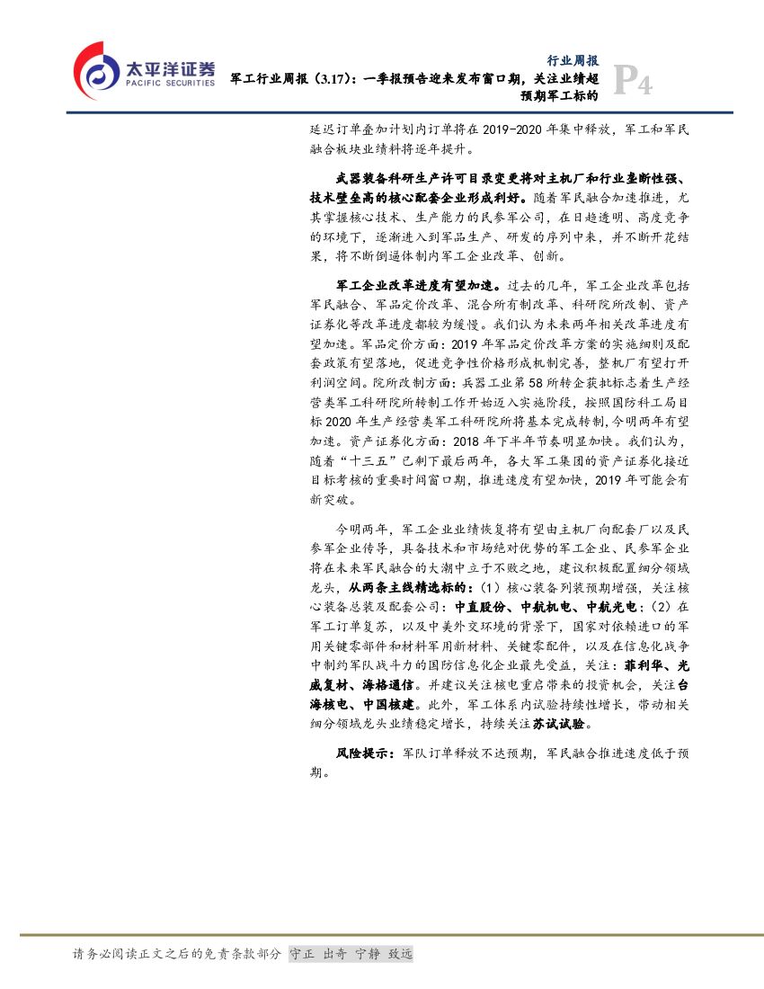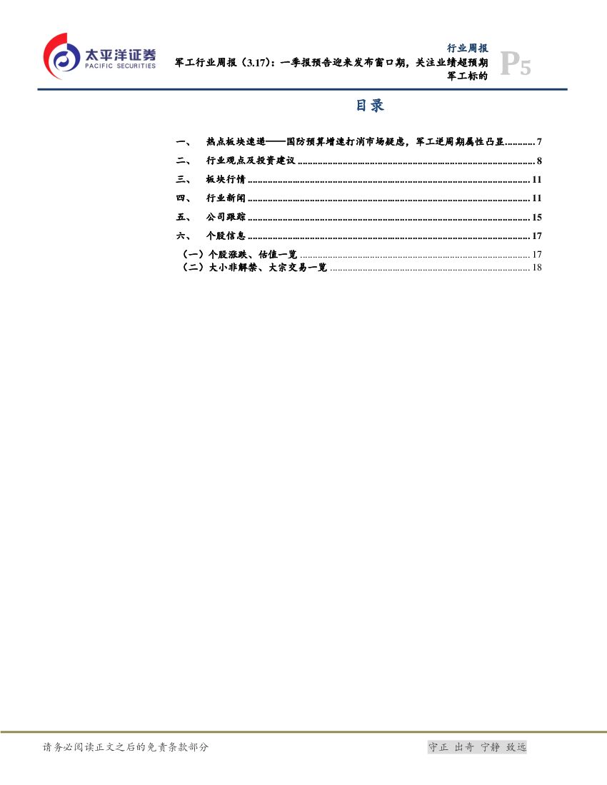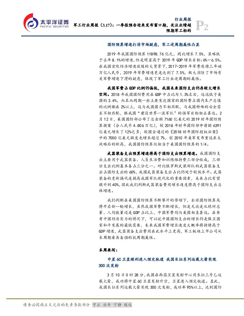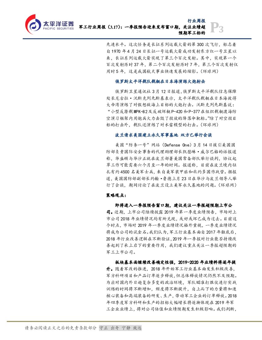 太平洋证券:军工行业周报:一季报预告迎来发布窗口期,关注业绩超预期军工标的.pdf