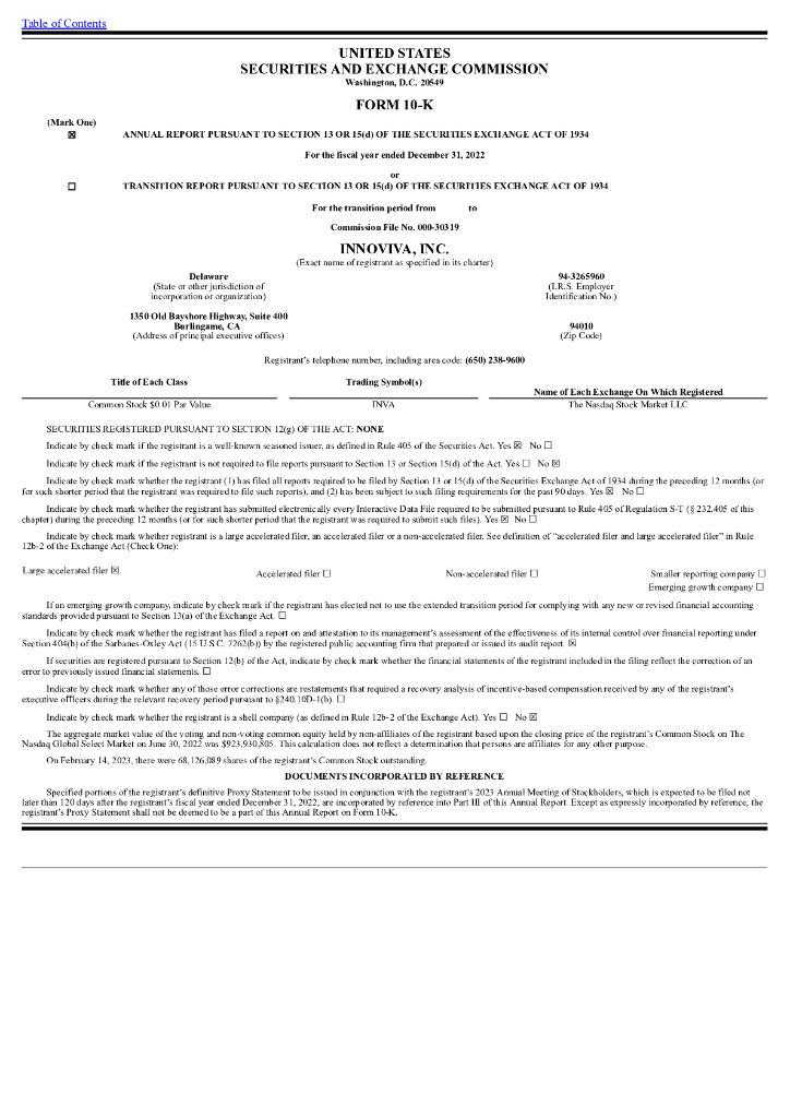 Innoviva, Inc.(INVA)2022财年年度报告(英文版).pdf