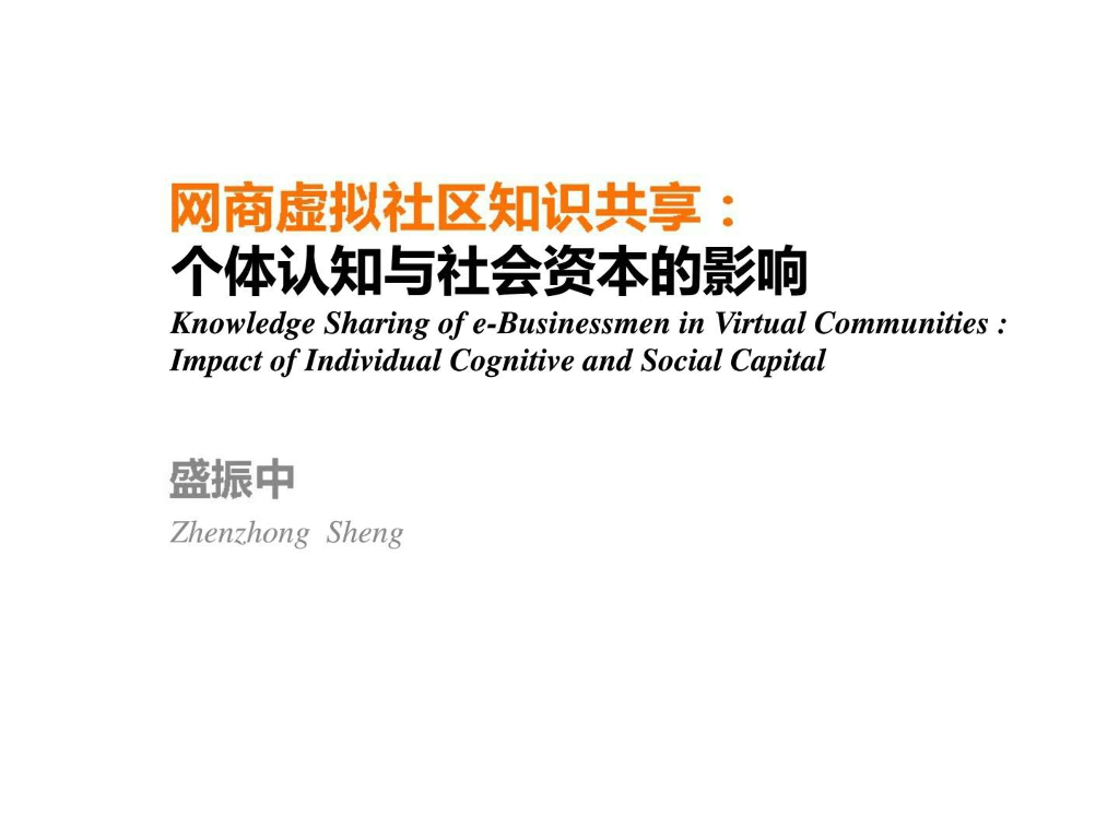 网商虚拟社区知识共享:个体认知与社会资本的影响.ppt