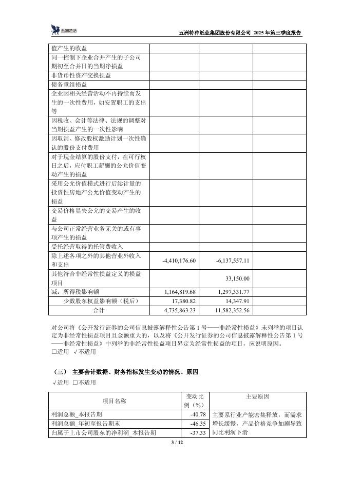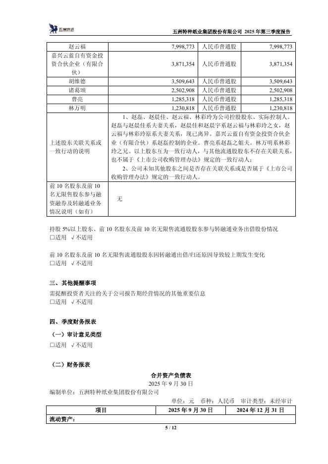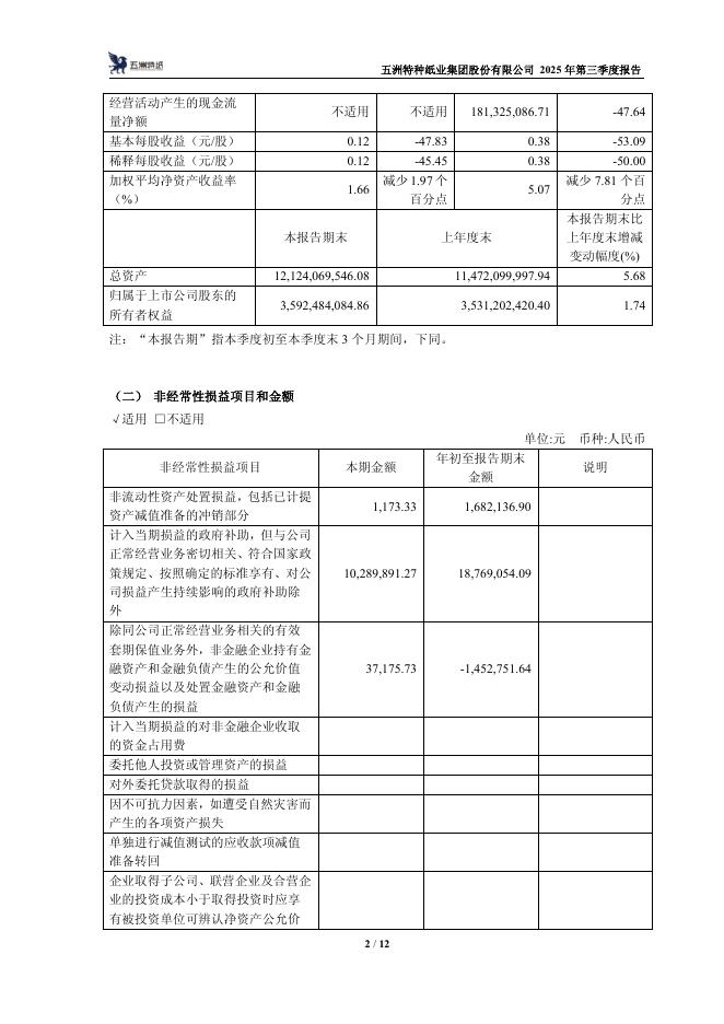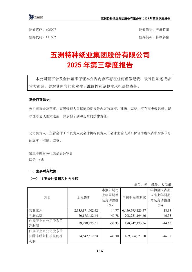 111002-五洲特纸:五洲特种纸业集团股份有限公司2025年第三季度报告.pdf