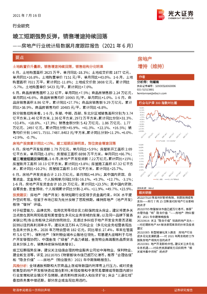 光大证券:房地产行业统计局数据月度跟踪报告(2021年6月):竣工短期强势反弹,销售增速持续回落.pdf