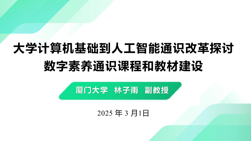 厦门大学(林子雨):2025年大学计算机基础到人工智能通识改革探讨-数字素养通识课程和教材建设报告.pdf