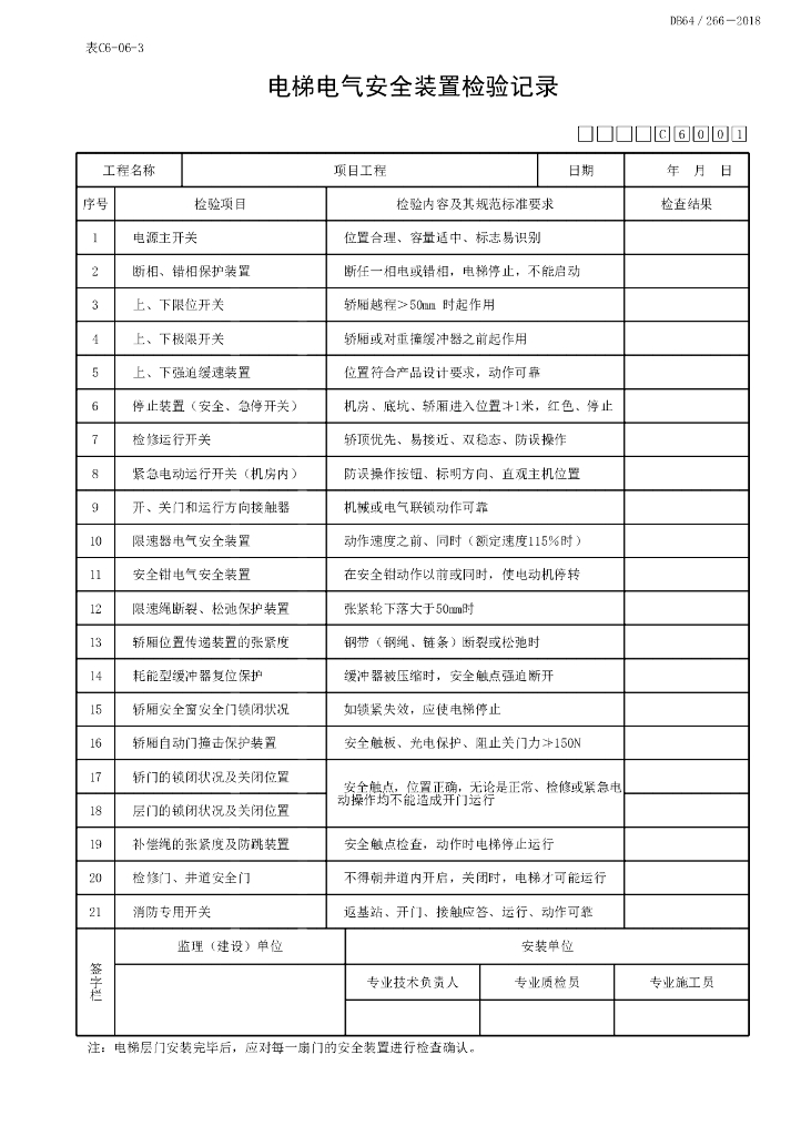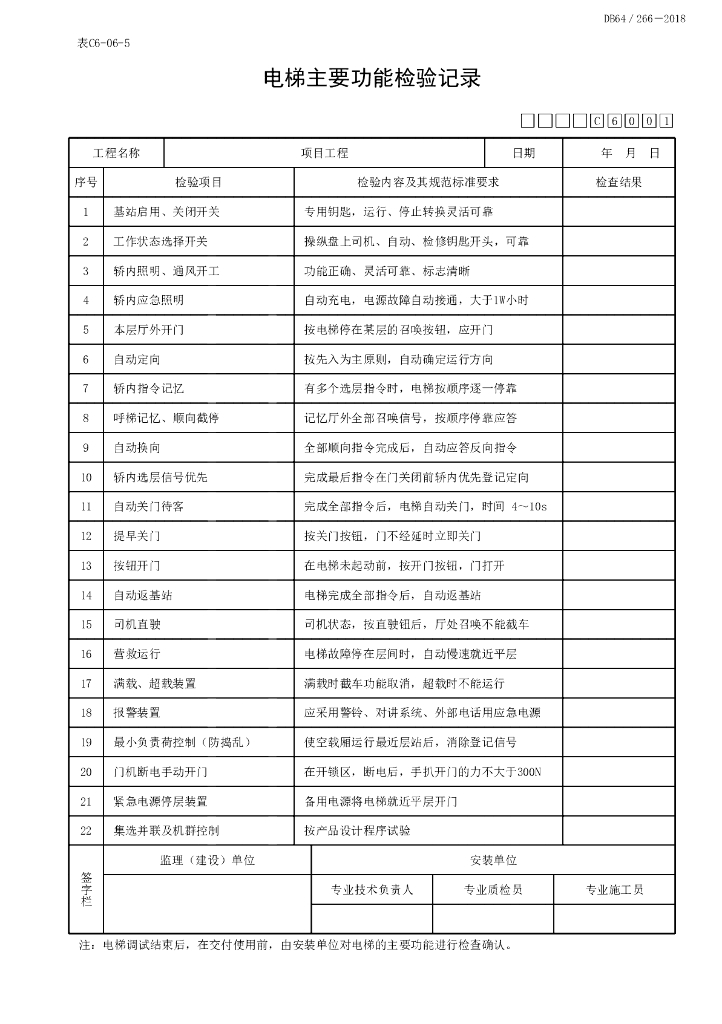 宁夏电梯工程施工实验记录及检测12P.pdf