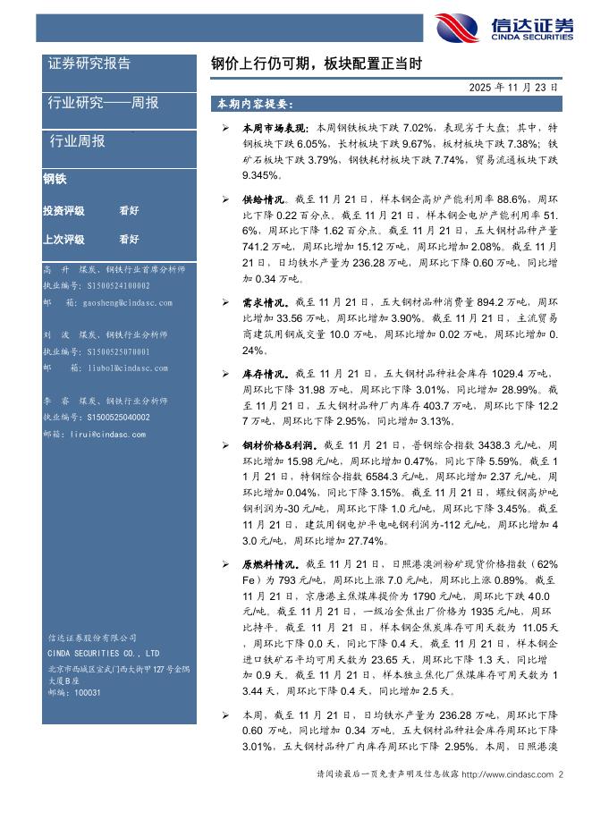 信达证券:钢铁行业周报:钢价上行仍可期,板块配置正当时.pdf