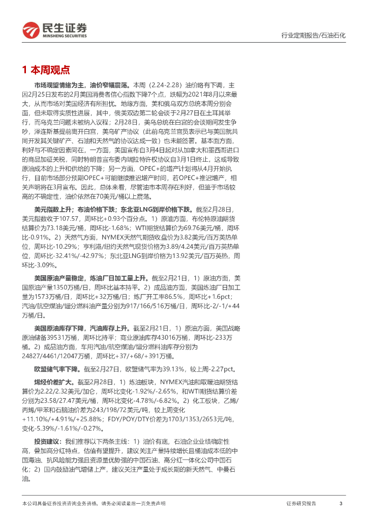 民生证券:石化周报:市场观望情绪为主,油价窄幅震荡.pdf