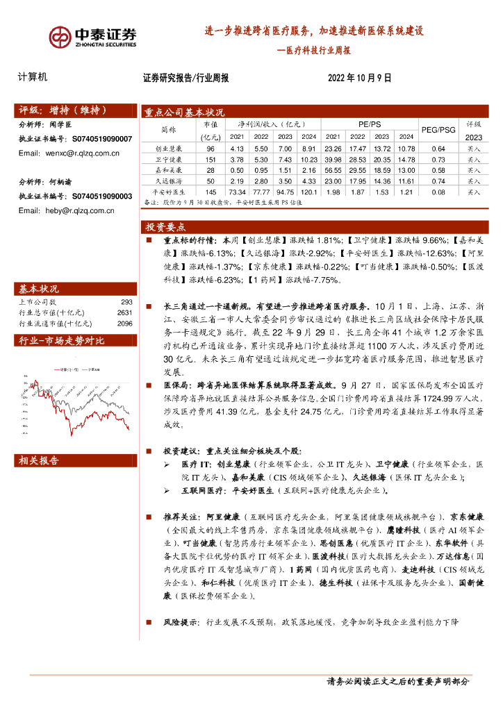 中泰证券:医疗科技行业周报:进一步推进跨省医疗服务,加速推进新医保系统建设.pdf