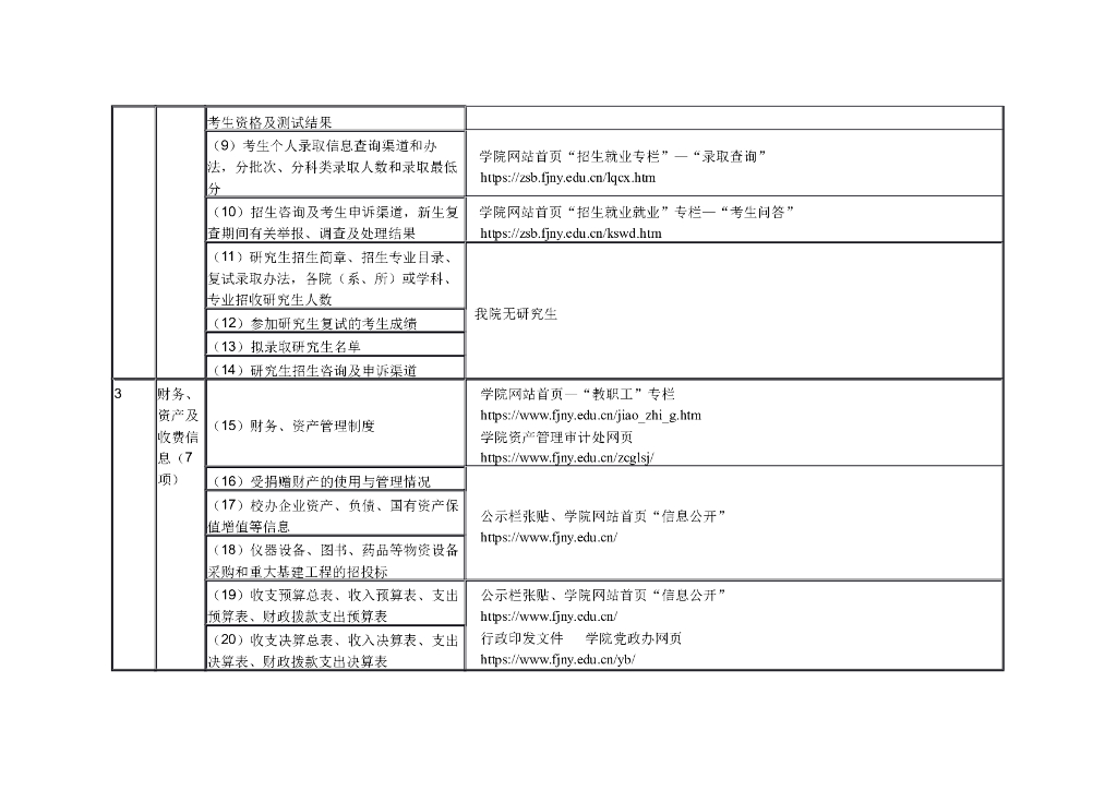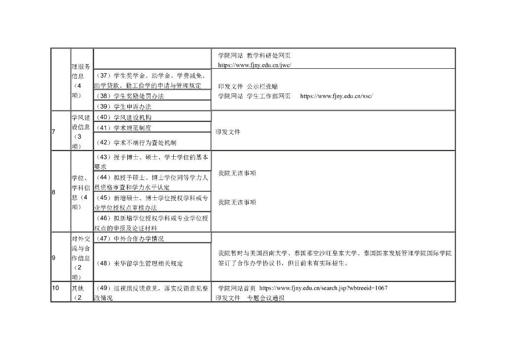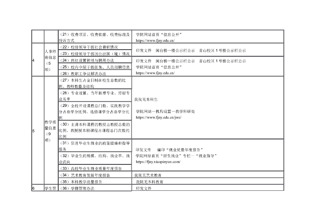 福建农业职业技术学院2021-2022学年清单事项信息公开情况表.doc