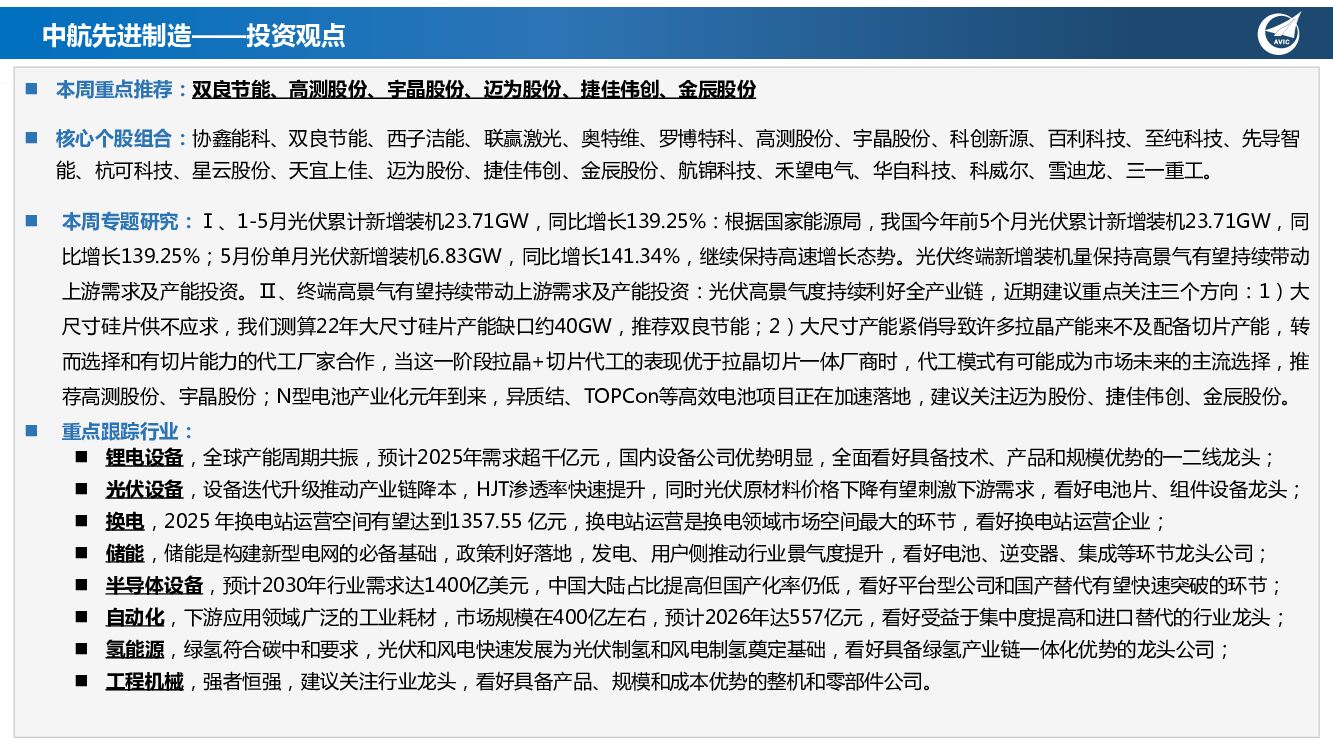 中航证券:先进制造行业周报:5月光伏新增装机量超预期,终端高景气有望持续带动上游需求及产能投资.pdf