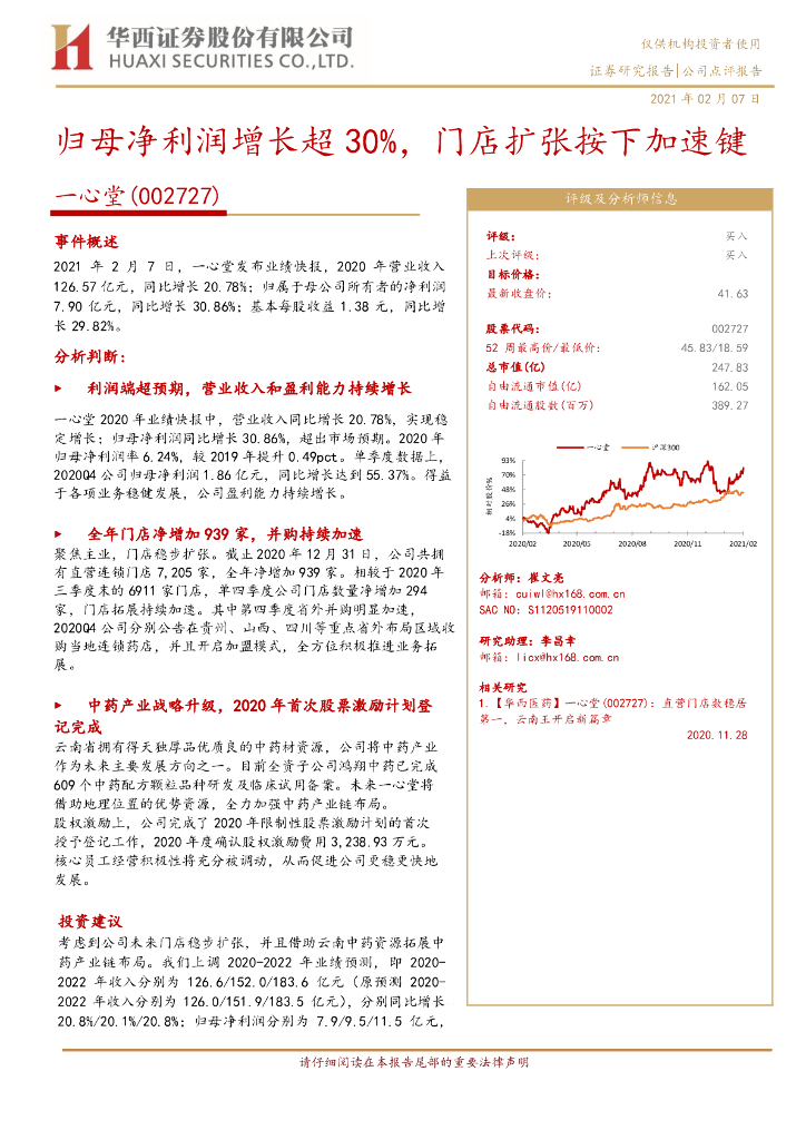 华西证券:一心堂(002727)-归母净利润增长超30%,门店扩张按下加速键.pdf