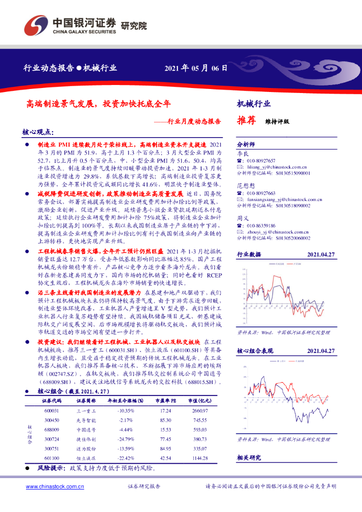 中国银河:机械行业月度动态报告:高端制造景气发展,投资加快托底全年.pdf