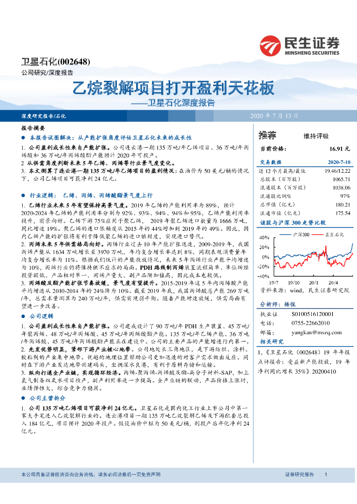 民生证券:卫星石化深度报告:乙烷裂解项目打开盈利天花板.pdf