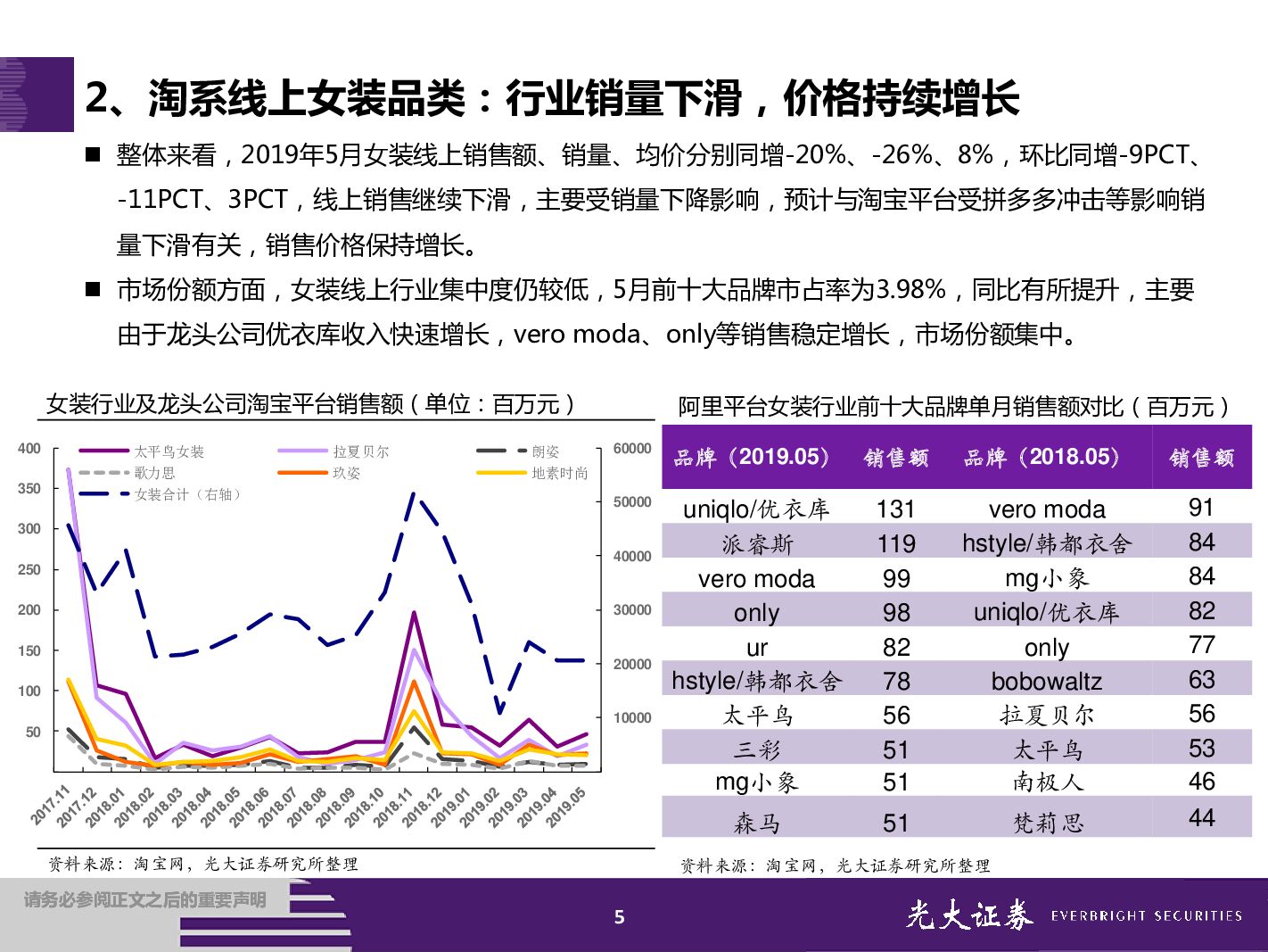 光大证券:服装&化妆品2019年5月淘宝数据跟踪与解读:服装行业线上消费疲软,化妆品销售增速放缓.pdf