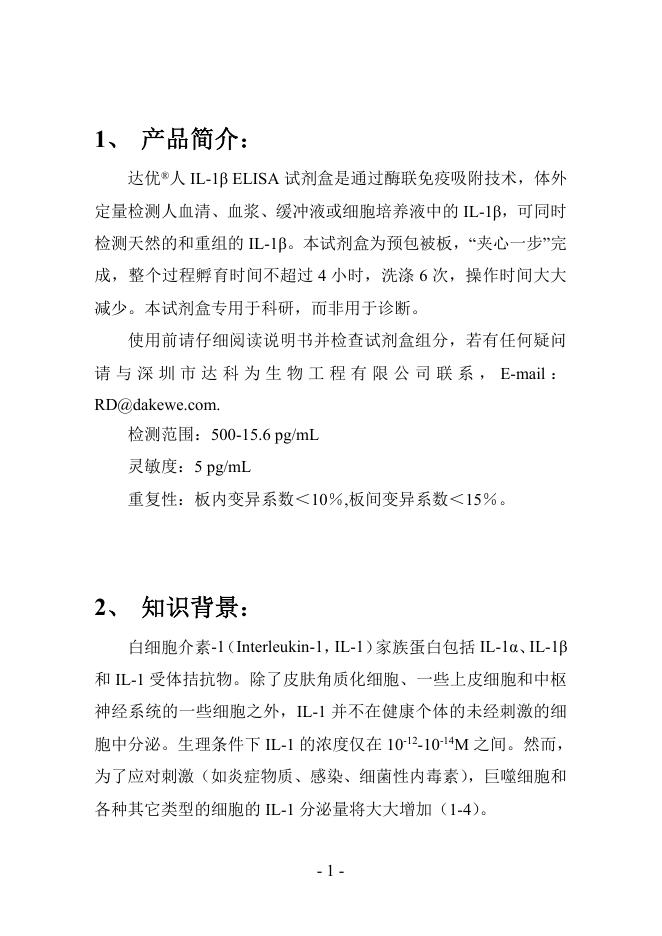 达优®人 IL-1β ELISA 试剂盒.pdf