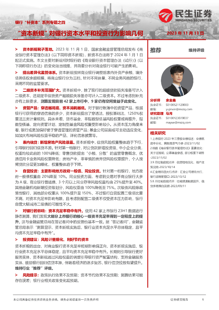 民生证券:银行“补资本”系列专题之四:“资本新规”对银行资本水平和投资行为影响几何.pdf
