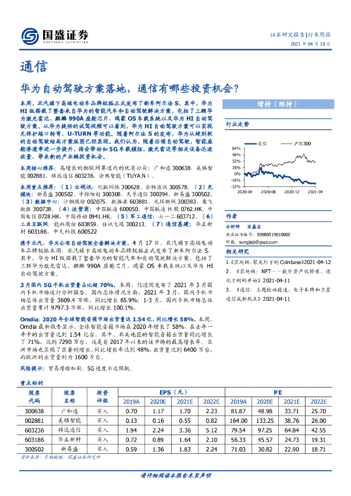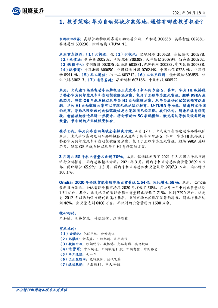 国盛证券:通信行业周报:华为自动驾驶方案落地,通信有哪些投资机会?.pdf