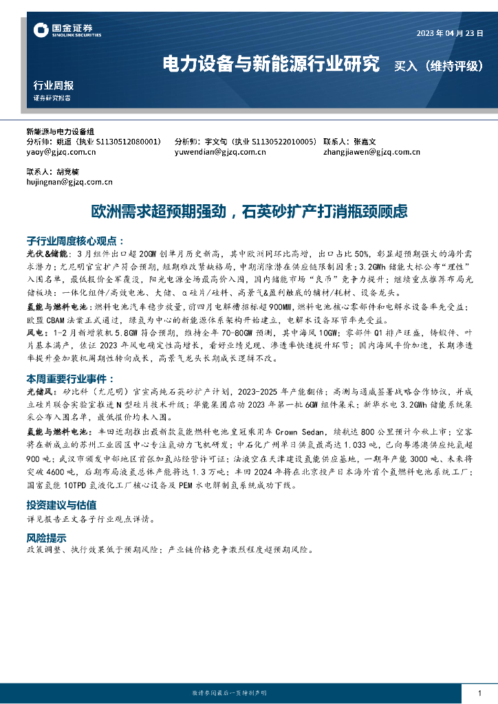 国金证券:电力设备与新能源行业研究:欧洲需求超预期强劲,石英砂扩产打消瓶颈顾虑.pdf