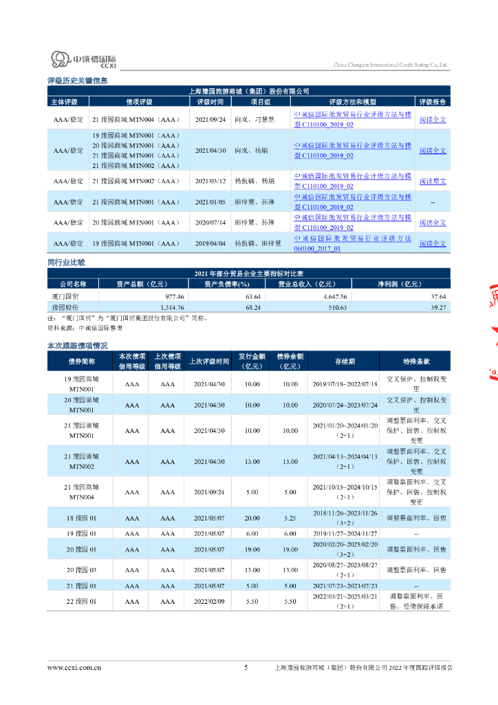 中诚信:上海豫园旅游商城(集团)股份有限公司2022年度跟踪评级报告.pdf