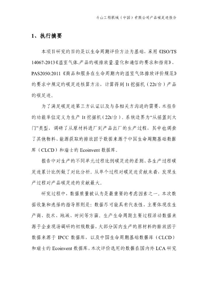 斗山工程机械(中国)有限公司1t挖掘机(22t台)产品碳足迹报告.pdf