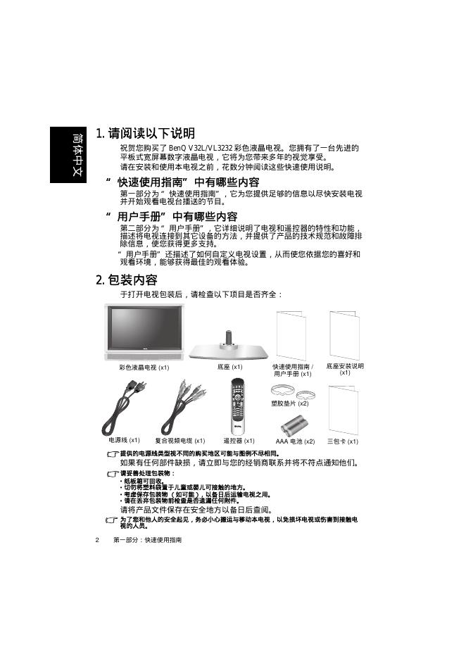 BenQ V32L/VL3232 彩色液晶电视 快速使用指南.pdf