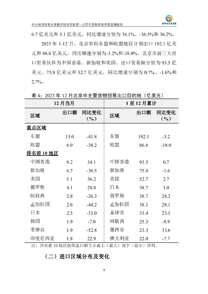 对外经济贸易大学:北京市货物贸易月度监测报告(2023年1-12月).pdf