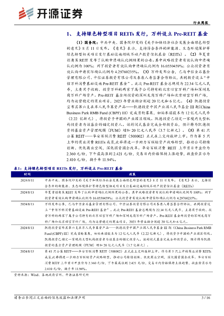 开源证券:REITs行业周报:支持绿色转型项目REITs发行,华安百联消费REIT正式上市.pdf