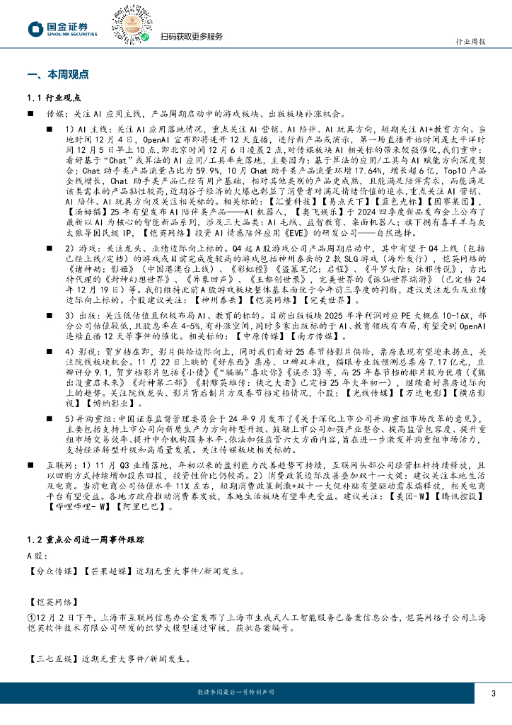 国金证券:传媒互联网行业周报:OpenAI连续12天直播进行中,关注AI应用及内容板块机会.pdf