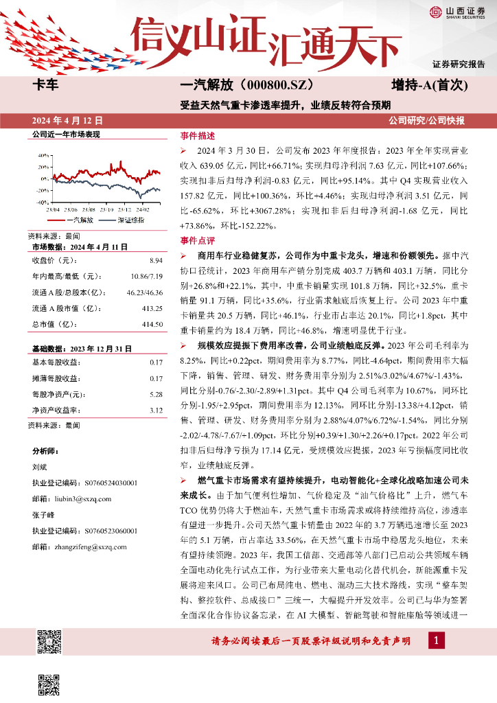 山西证券:一汽解放(000800)-受益天然气重卡渗透率提升,业绩反转符合预期.pdf