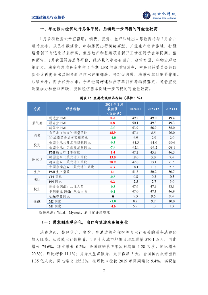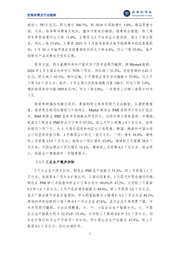 新世纪评级:经济运行总体平稳 出口有望迎来积极变化——2024年1月宏观和行业运行简析.pdf