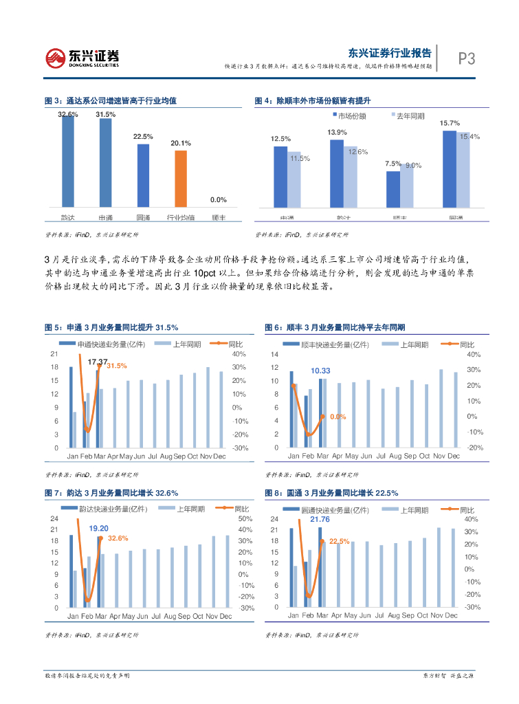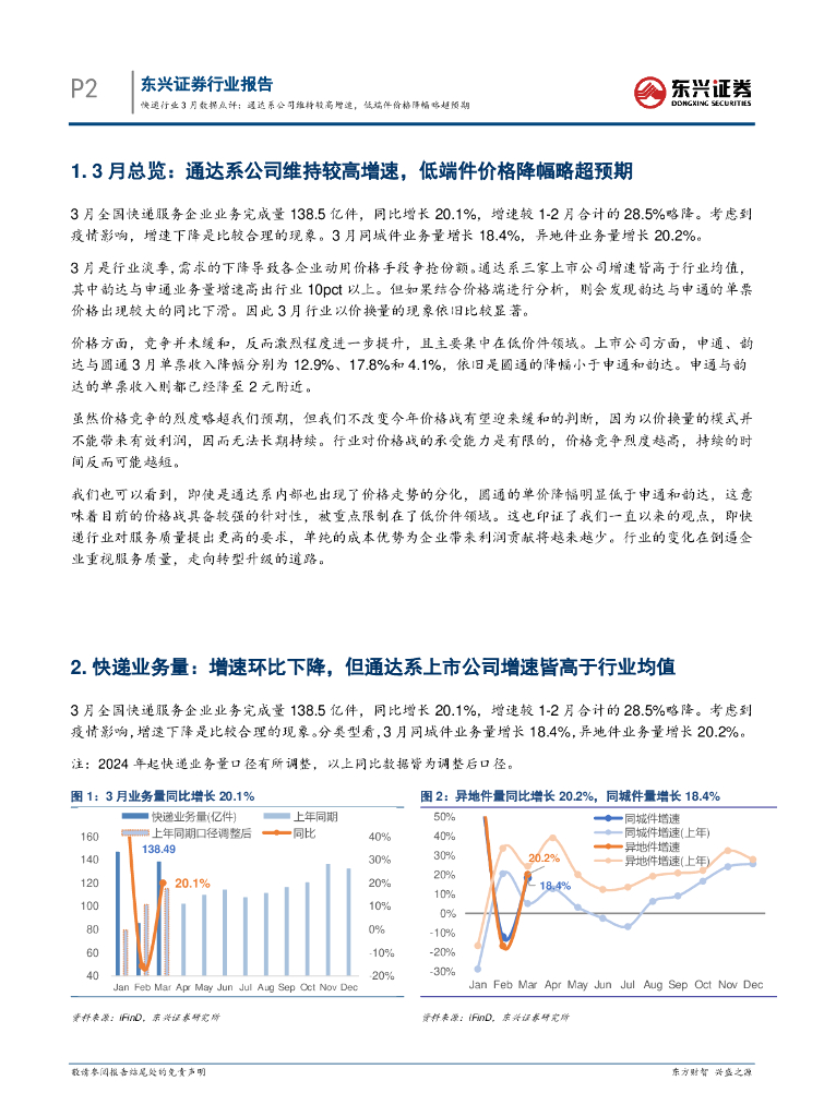 东兴证券:快递行业3月数据点评:通达系公司维持较高增速,低端件价格降幅略超预期.pdf