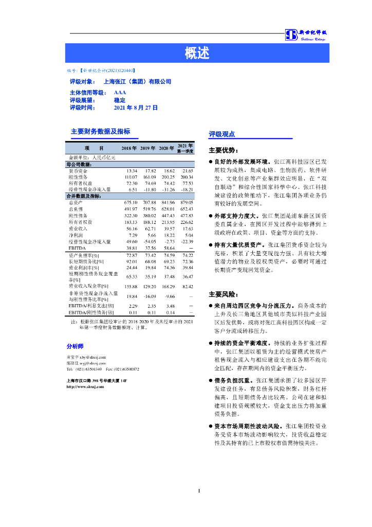 新世纪:上海张江(集团)有限公司2021年度主体信用评级报告.pdf