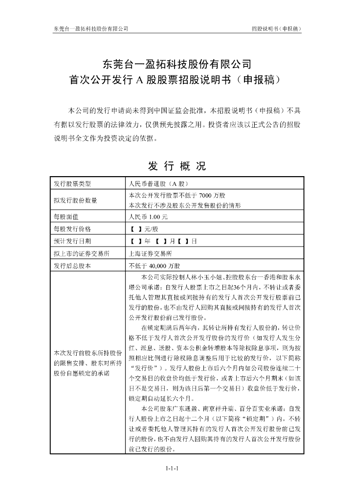 东莞台一盈拓科技股份有限公司上交所主板IPO上市招股说明书.pdf