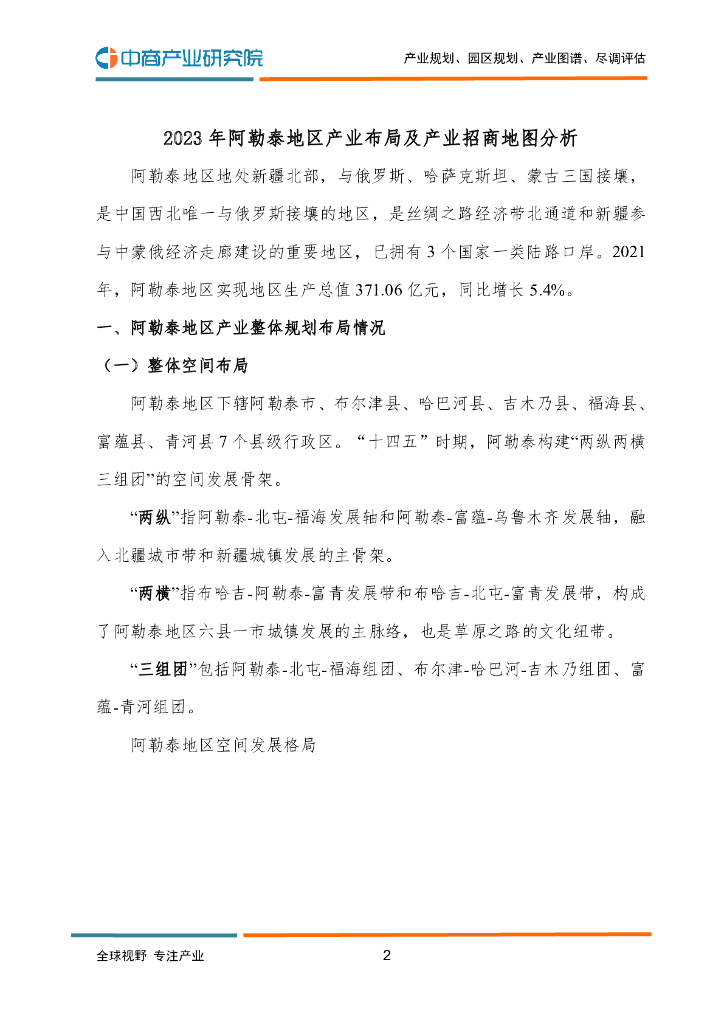 中商产业研究院:2023年阿勒泰地区产业布局及产业招商地图分析.pdf