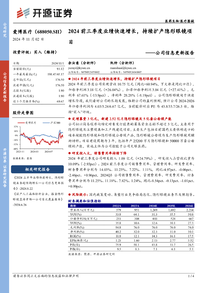 开源证券:爱博医疗(688050)-公司信息更新报告:2024前三季度业绩快速增长,持续扩产隐形眼镜项目.pdf
