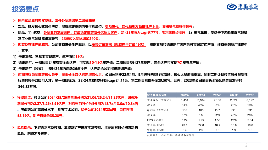 华福证券:航宇科技(688239)-深度报告:深耕航发环形锻件,国内+海外齐头并进.pdf