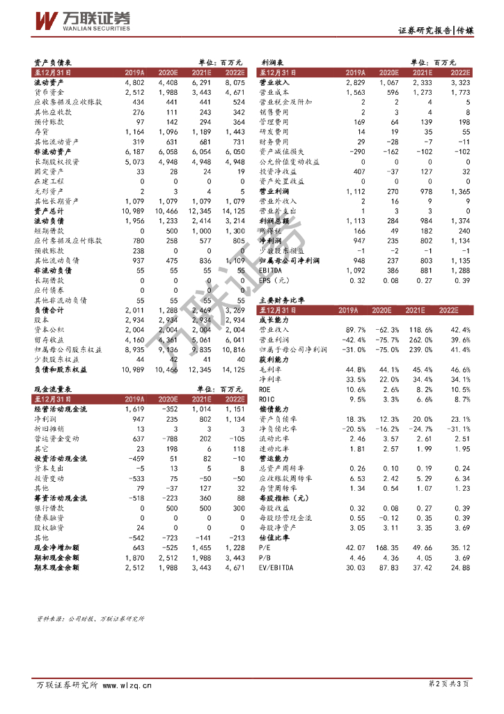 万联证券:光线传媒(300251)-事项点评报告:疫情冲击下仍实现盈利,内容充足护航后续增长.pdf